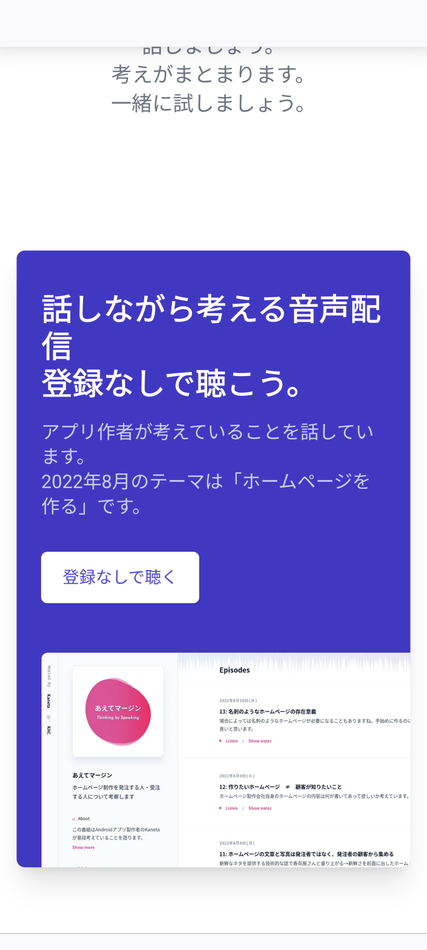 名刺のようなホームページ 試作1 https://podcasts.knc.jp/14 14 Thu, 11 Aug 2022 00:00:00 GMT Topics